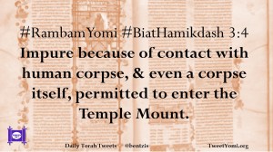 #RambamYomi #BiatHamikdash 3:4 Impure because of contact with human corpse, & even a corpse itself, permitted to enter the Temple Mount.