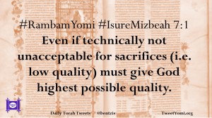 #RambamYomi #IsureMizbeah 7:1 Even if technically not unacceptable for sacrifices (i.e. low quality) must give God highest possible quality.