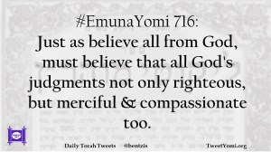 #EmunaYomi 716: Just as believe all from God, must believe that all God’s judgments not only righteous, but merciful & compassionate too.