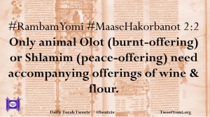 #RambamYomi #MaaseHakorbanot 2:2 Only animal Olot (burnt-offering) or Shlamim (peace-offering) need accompanying offerings of wine & flour.