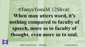 #TanyaYomiM 12Shvat: When man utters word, it’s nothing compared to faculty of speech, more so to faculty of thought, even more so to soul.