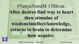 #TanyaYomiM 13Shvat: After desires find way to heart thru stimulus of wisdom/intellect/knowledge, returns to brain to determine how acquire.