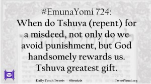 #EmunaYomi 724: When do Tshuva (repent) for a misdeed, not only do we avoid punishment, but God handsomely rewards us. Tshuva greatest gift.