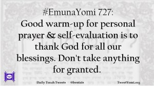 #EmunaYomi 727: Good warm-up for personal prayer & self-evaluation is to thank God for all our blessings. Don’t take anything for granted.