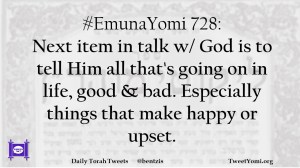#EmunaYomi 728: Next item in talk w/ God is to tell Him all that’s going on in life, good & bad. Especially things that make happy or upset.