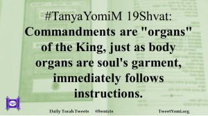 #TanyaYomiM 19Shvat: Commandments are “organs” of the King, just as body organs are soul’s garment, immediately follows instructions.