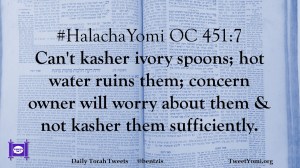 #HalachaYomi OC 451:7 Can’t kasher ivory spoons; hot water ruins them; concern owner will worry about them & not kasher them sufficiently.