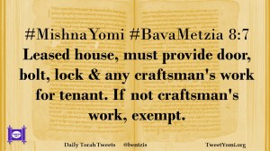 #MishnaYomi #BavaMetzia 8:7 Leased house, must provide door, bolt, lock & any craftsman’s work for tenant. If not craftsman’s work, exempt.