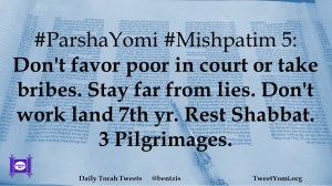 #ParshaYomi #Mishpatim 5: Don’t favor poor in court or take bribes. Stay far from lies. Don’t work land 7th yr. Rest Shabbat. 3 Pilgrimages.
