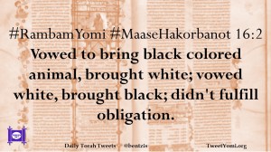 #RambamYomi #MaaseHakorbanot 16:2 Vowed to bring black colored animal, brought white; vowed white, brought black; didn’t fulfill obligation.
