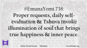 #EmunaYomi 738: Proper requests, daily self-evaluation & Tshuva invoke illumination of soul that brings true happiness & inner peace.
