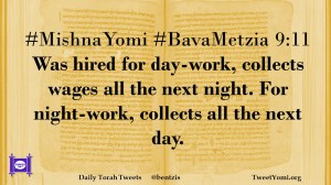 #MishnaYomi #BavaMetzia 9:11 Was hired for day-work, collects wages all the next night. For night-work, collects all the next day.
