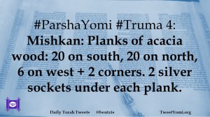 #ParshaYomi #Truma 4: Mishkan: Planks of acacia wood: 20 on south, 20 on north, 6 on west + 2 corners. 2 silver sockets under each plank.
