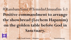 #RambamYomi #TemidinUmusafim 5:1 Positive commandment to arrange the showbread (Lechem Hapanim) on the golden table before God in Sanctuary.