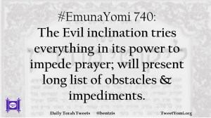 #EmunaYomi 740: The Evil inclination tries everything in its power to impede prayer; will present long list of obstacles & impediments.