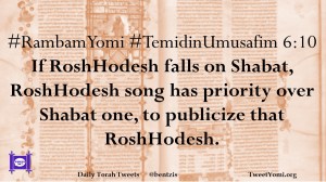 #RambamYomi #TemidinUmusafim 6:10 If RoshHodesh falls on Shabat, RoshHodesh song has priority over Shabat one, to publicize that RoshHodesh.