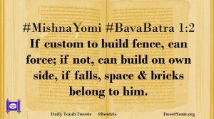 #MishnaYomi #BavaBatra 1:2 If custom to build fence, can force; if not, can build on own side, if falls, space & bricks belong to him.