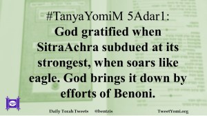 #TanyaYomiM 5Adar1: God gratified when SitraAchra subdued at its strongest, when soars like eagle. God brings it down by efforts of Benoni.
