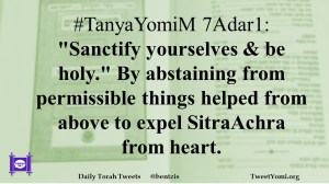 #TanyaYomiM 7Adar1: “Sanctify yourselves & be holy.” By abstaining from permissible things helped from above to expel SitraAchra from heart.