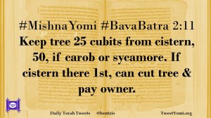 #MishnaYomi #BavaBatra 2:11 Keep tree 25 cubits from cistern, 50, if carob or sycamore. If cistern there 1st, can cut tree & pay owner.