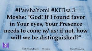 #ParshaYomi #KiTisa 3: Moshe: “God! If I found favor in Your eyes, Your Presence needs to come w/ us; if not, how will we be distinguished?”