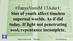 #TanyaYomiM 13Adar1: Sins of youth affect timeless supernal worlds. As if did today. If light not penetrating soul, repentance incomplete.