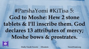 #ParshaYomi #KiTisa 5: God to Moshe: Hew 2 stone tablets & I’ll inscribe them. God declares 13 attributes of mercy; Moshe bows & prostrates.