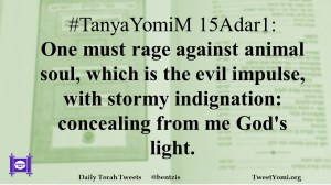 #TanyaYomiM 15Adar1: One must rage against animal soul, which is the evil impulse, with stormy indignation: concealing from me God’s light.