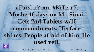 #ParshaYomi #KiTisa 7: Moshe 40 days on Mt. Sinai. Gets 2nd Tablets w/10 commandments. His face shines. People afraid of him. He used veil.