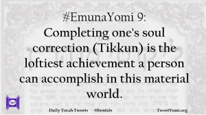 #EmunaYomi 9: Completing one’s soul correction (Tikkun) is the loftiest achievement a person can accomplish in this material world.