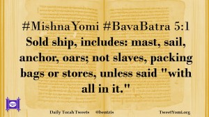 #MishnaYomi #BavaBatra 5:1 Sold ship, includes: mast, sail, anchor, oars; not slaves, packing bags or stores, unless said “with all in it.”