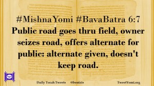 #MishnaYomi #BavaBatra 6:7 Public road goes thru field, owner seizes road, offers alternate for public: alternate given, doesn’t keep road.
