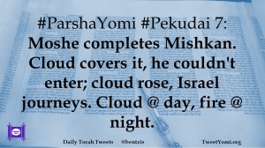 #ParshaYomi #Pekudai 7: Moshe completes Mishkan. Cloud covers it, he couldn’t enter; cloud rose, Israel journeys. Cloud @ day, fire @ night.