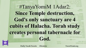 #TanyaYomiM 1Adar2: Since Temple destruction, God’s only sanctuary are 4 cubits of Halacha. Torah study creates personal tabernacle for God.