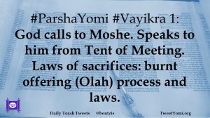 #ParshaYomi #Vayikra 1: God calls to Moshe. Speaks to him from Tent of Meeting. Laws of sacrifices: burnt offering (Olah) process and laws.
