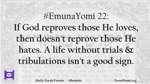#EmunaYomi 22: If God reproves those He loves, then doesn’t reprove those He hates. A life without trials & tribulations isn’t a good sign.