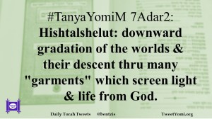 #TanyaYomiM 7Adar2: Hishtalshelut: downward gradation of the worlds & their descent thru many “garments” which screen light & life from God.