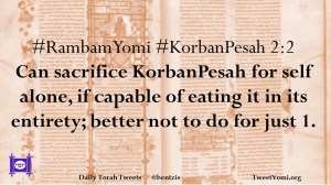 #RambamYomi #KorbanPesah 2:2 Can sacrifice KorbanPesah for self alone, if capable of eating it in its entirety; better not to do for just 1.