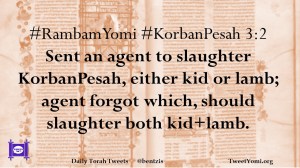 #RambamYomi #KorbanPesah 3:2 Sent an agent to slaughter KorbanPesah, either kid or lamb; agent forgot which, should slaughter both kid+lamb.