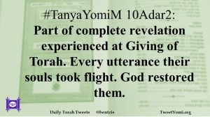 #TanyaYomiM 10Adar2: Part of complete revelation experienced at Giving of Torah. Every utterance their souls took flight. God restored them.