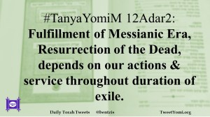 #TanyaYomiM 12Adar2: Fulfillment of Messianic Era, Resurrection of the Dead, depends on our actions & service throughout duration of exile.