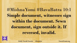 #MishnaYomi #BavaBatra 10:1 Simple document, witnesses sign within the document. Sewn document, sign outside it. If reversed, invalid.