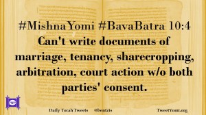 #MishnaYomi #BavaBatra 10:4 Can’t write documents of marriage, tenancy, sharecropping, arbitration, court action w/o both parties’ consent.