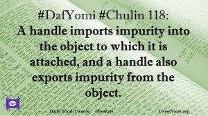 Chulin, DafYomi #DafYomi #Chulin 118 Date: March 25, 2019Author: ysspitz #DafYomi #Chulin 118: A handle imports impurity into the object to which it is attached, and a handle also exports impurity from the object. Share this: Share on X (Opens in new window) X Share on Facebook (Opens in new window) Facebook Like Loading... Related