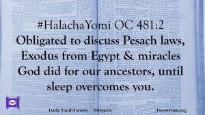 #HalachaYomi OC 481:2 Obligated to discuss Pesach laws, Exodus from Egypt & miracles God did for our ancestors, until sleep overcomes you.