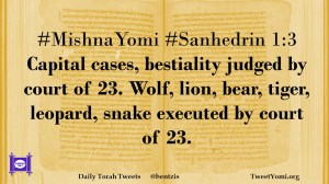 #MishnaYomi #Sanhedrin 1:3 Capital cases, bestiality judged by court of 23. Wolf, lion, bear, tiger, leopard, snake executed by court of 23.