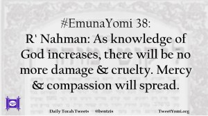 #EmunaYomi 38: R’ Nahman: As knowledge of God increases, there will be no more damage & cruelty. Mercy & compassion will spread.