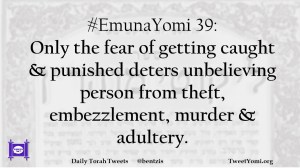#EmunaYomi 39: Only the fear of getting caught & punished deters unbelieving person from theft, embezzlement, murder & adultery.