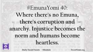 #EmunaYomi 40: Where there’s no Emuna, there’s corruption and anarchy. Injustice becomes the norm and humans become heartless.