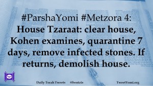 #ParshaYomi #Metzora 4: House Tzaraat: clear house, Kohen examines, quarantine 7 days, remove infected stones. If returns, demolish house.